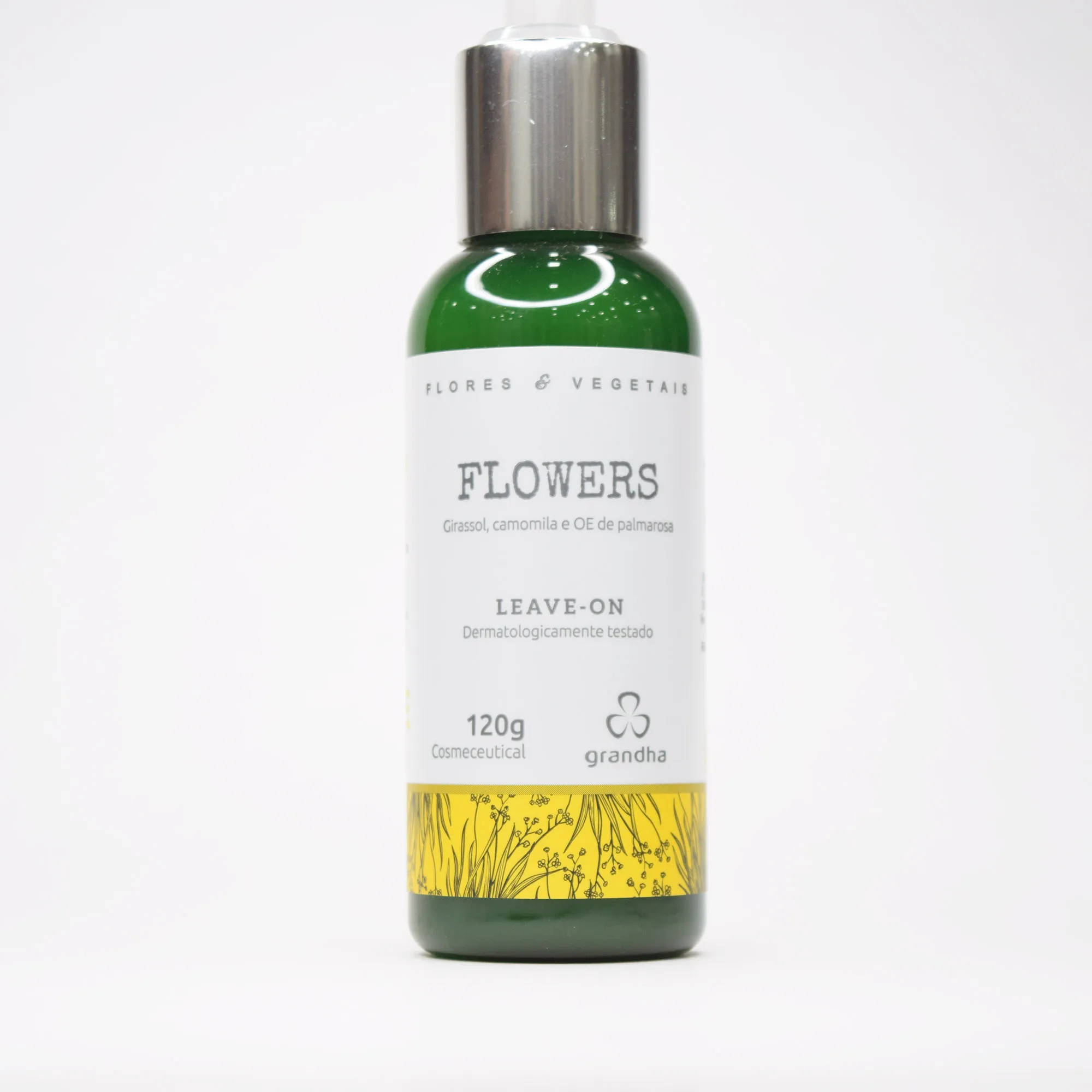 Suavizante do couro cabeludo, trata cabelos finos e delicados. A linha Flowers atua na suavização do couro cabeludo, tratando cabelos finos e delicados. O leave-on Flowers, da linha de terapia capilar, Flores e Vegetais, traz a elegância e o equilíbrio do óleo essencial de palmarosa com a delicadeza do girassol e da camomila para suavizar o couro cabeludo mais sensível e os cabelos mais finos e delicados.