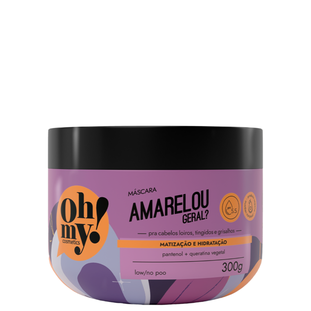 MODO DE USAR: é muito fácil! Após o shampoo, separe uma mechinha e espalhe a máscara, deslizando com as mãos por todo o loiro. Esse é o teste que diz em quanto tempo você atinge o tom ideal. Deixe a máscara agir até chegar no tom que você deseja. Pode levar de 1 a 20 minutos. Enxágue e faça o mesmo no resto do cabelo. Depois enxágue de novo até retirar tudinho. O resultado e o tempo de aplicação variam com a porosidade e o tom dos cabelos. Quer um resultado ainda mais incrível? Use toda a linha Amarelou geral? Oh My!